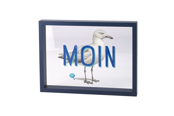 Mit diesem Glasbild von GiftCompany holst Du dir ein ganz besonderes Bild nach Hause. Es ist mit der einer Möwe und der Aufschrift MOIN bedruckt und lässt sich auch auf der Kommode oder einem kleinen Regal dekorieren. Aber such im Bad oder dem Eingangsbereich ist es ein echter Eyecatcher.