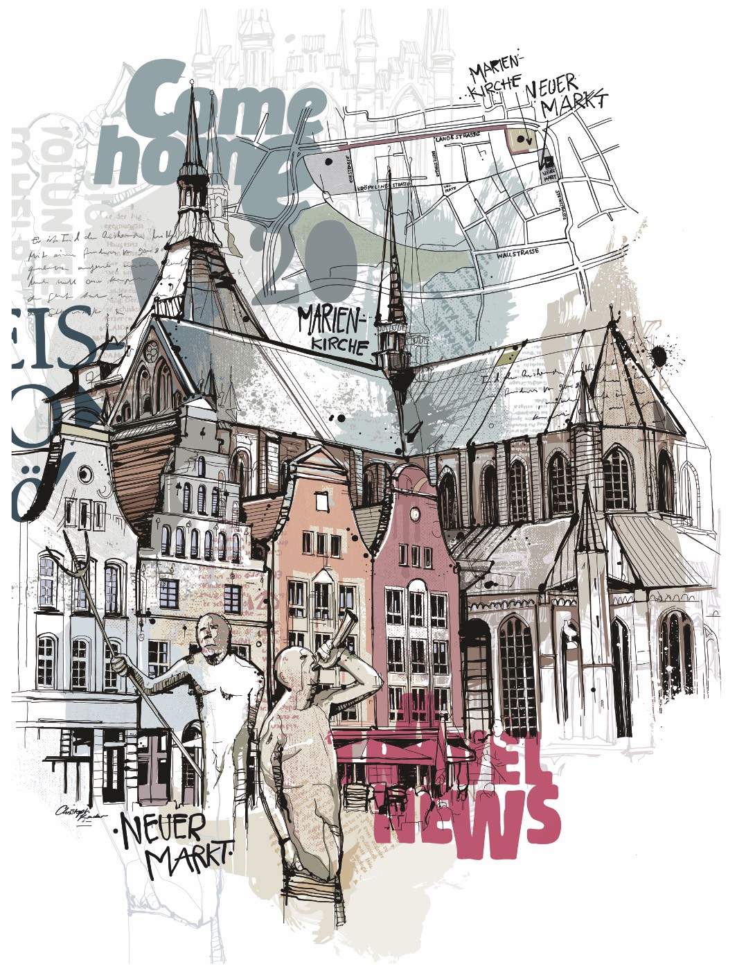Diese wundervolle Illustration von dem Rostocker Künstler Christoph Kadur wird auf hochwertigem 350qm2 Papier gedruckt. Das Bild hat eine Gesamtgröße von 45x32cm und der bedruckte Bereich beträgt 29x39cm.